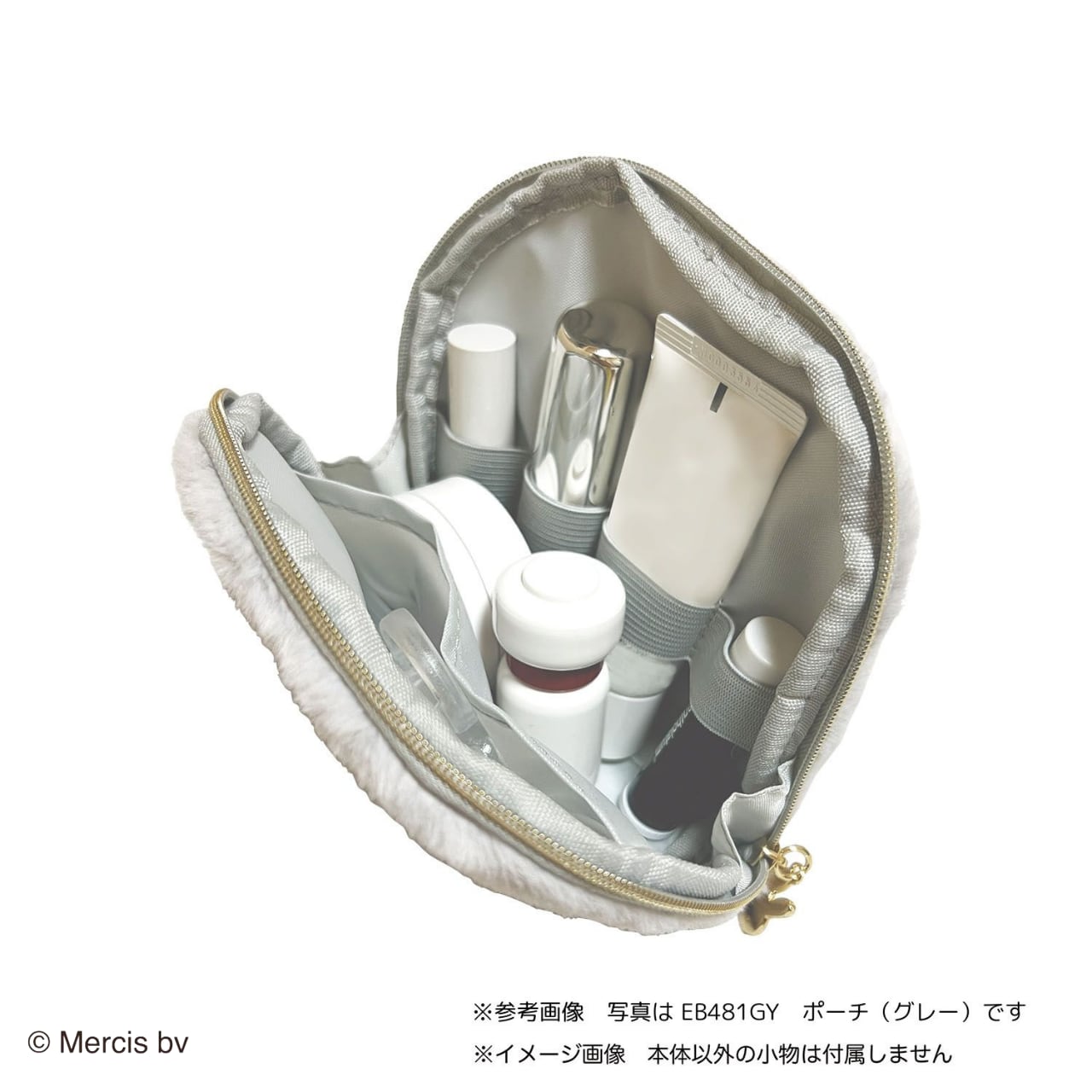 チャックを開けたポーチ内側にはポケット1室とリップや香水などスティック状のものが収納しやすいバンドがついているのでぱっと見で入れ忘れを確認できます。