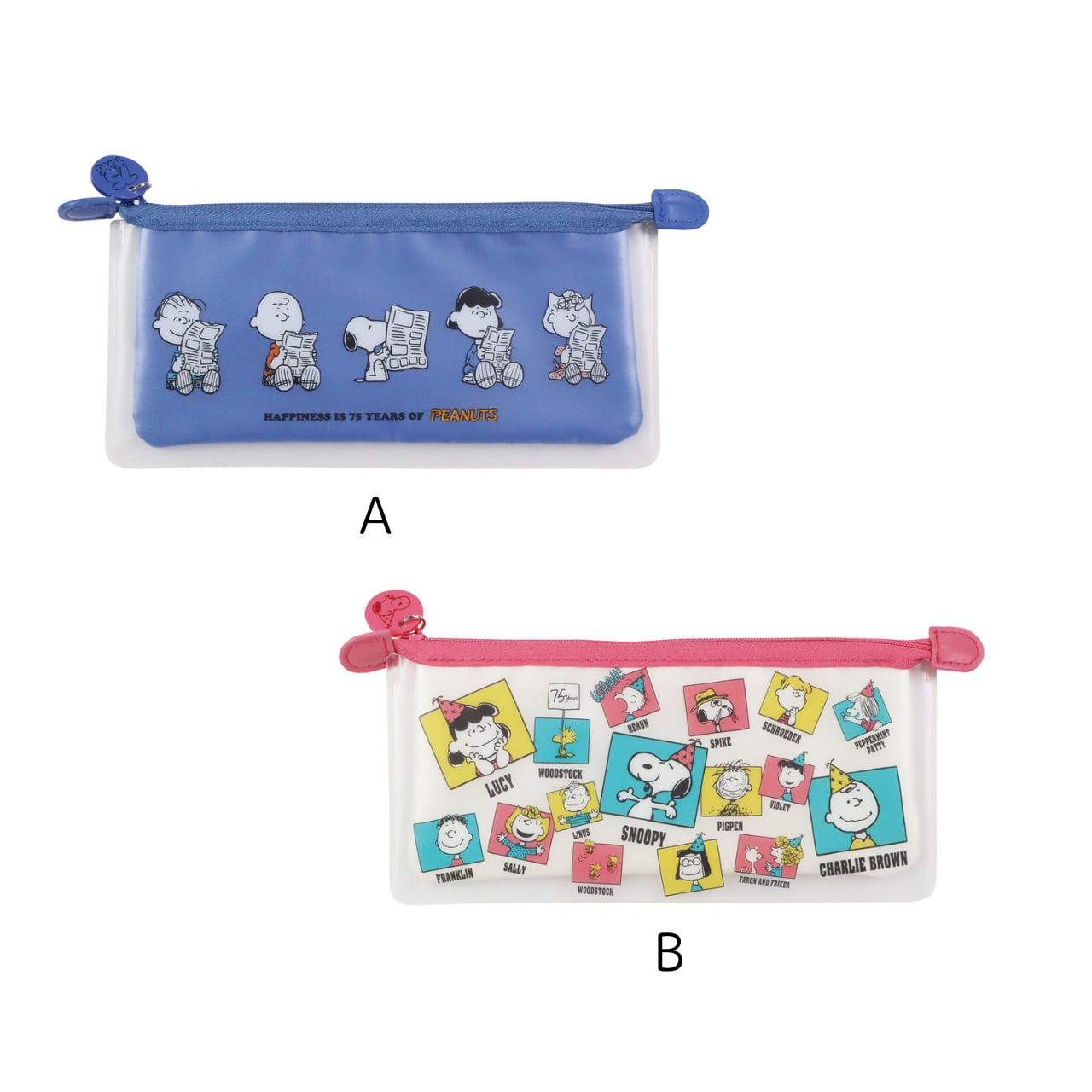 ファスナーの引き手にはA柄にはスヌーピーが、B柄には75周年ロゴがデザインされています。