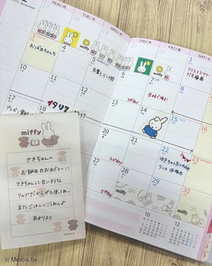 絵本に登場するお花と丸耳のミッフィーがデザインされています。