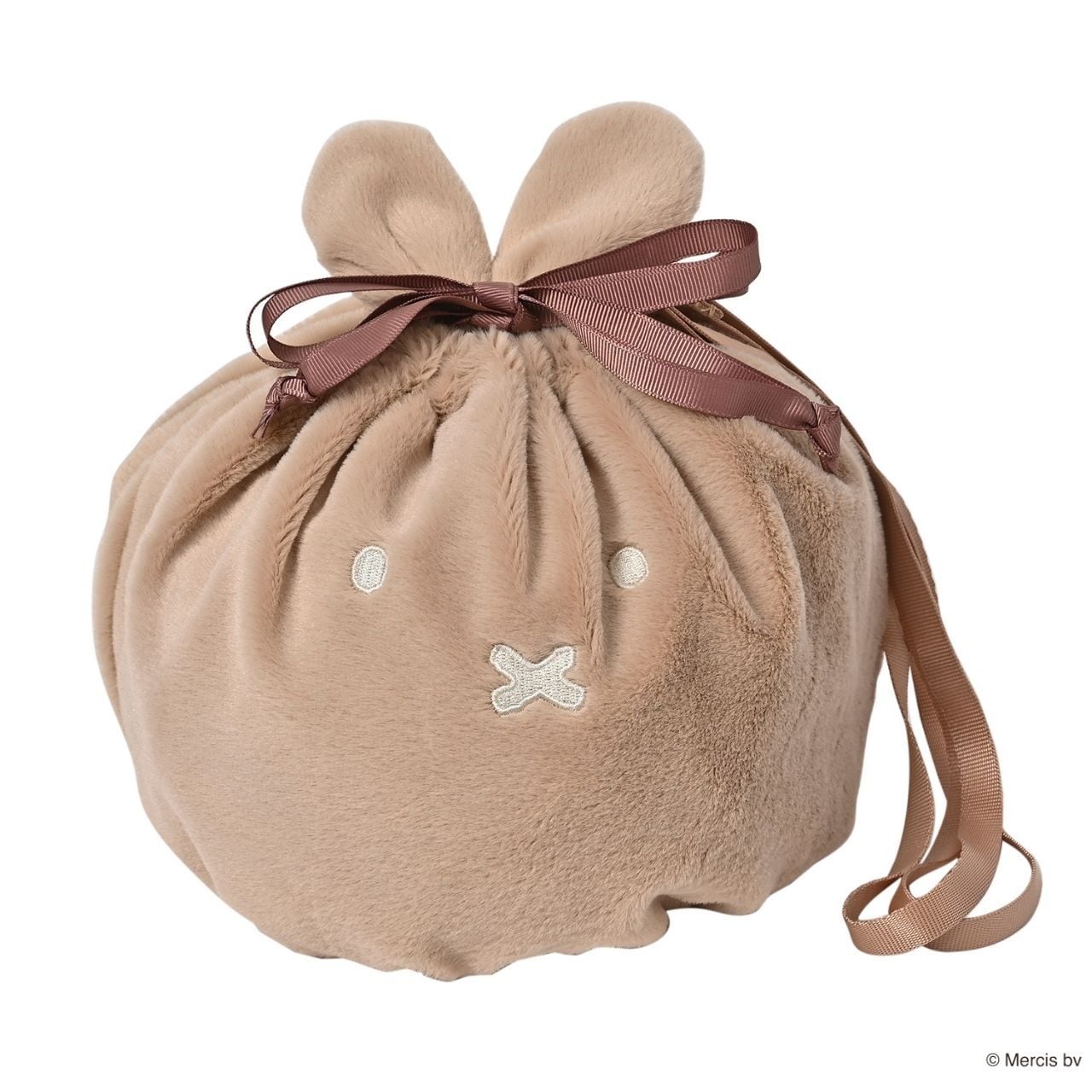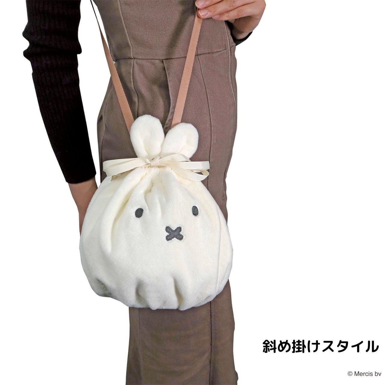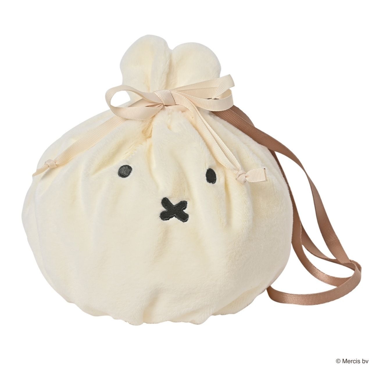 ミッフィーの耳付きふわふわ巾着バッグ。